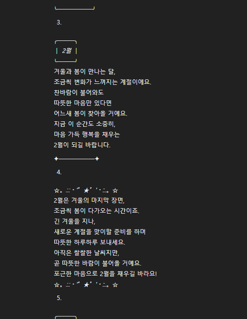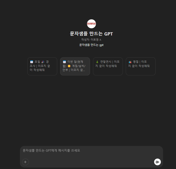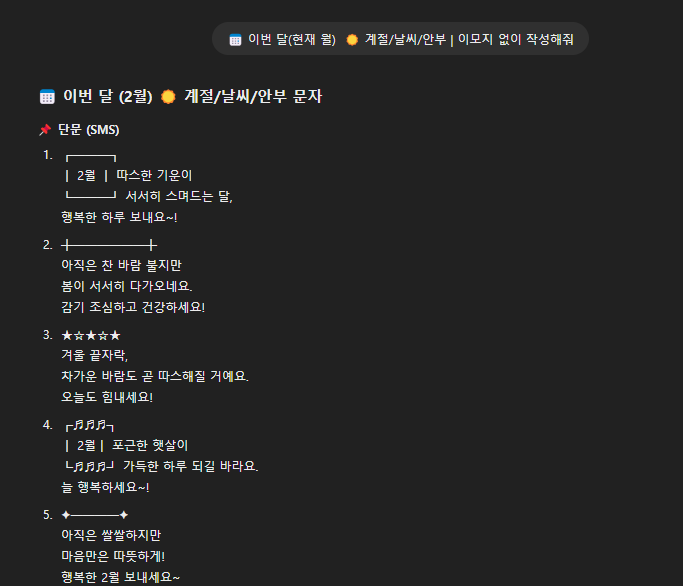 - 사용자가 입력한 키워드(예: '봄', '생일', '격려', '축하')에 맞춰 메시지를 변형할 것