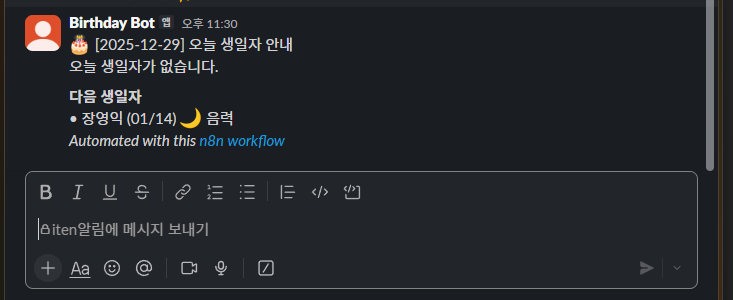 [직원생일알림] n8n으로 직원 생일알림을 slack으로 발송